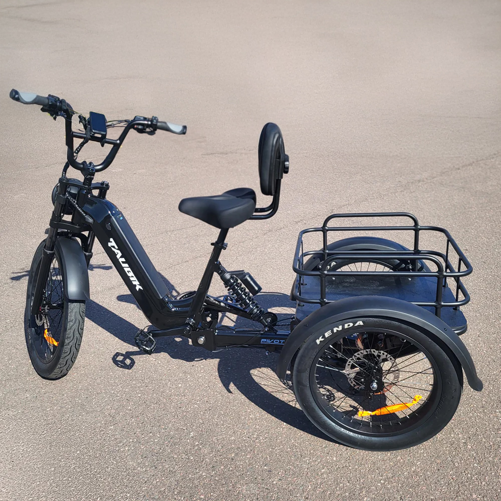 Présentation du premier tricycle électrique de Taubik, conçu pour la stabilité, le confort et les performances à longue portée. Contrairement à la plupart des tricycles électriques à traction avant, ce modèle est doté d’un puissant moteur à propulsion arrière pour une meilleure traction et un meilleur contrôle. Sa suspension arrière articulée absorbe les bosses pour une conduite