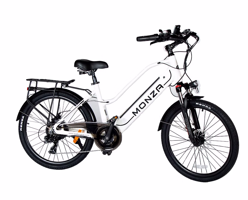 Le modèle Monza du constructeur Écolo-Cycle est un vélo style cadre bas. Son moteur de 500W, sa batterie de 48V 10AH et son dérailleur Shimano de 7 vitesses vous procure une autonomie allant jusqu’à 70 KM. C’est un modèle parfait pour les personnes de plus petites taille puisqu’il s’agit d’un vélo avec des roues de 24 pouces.